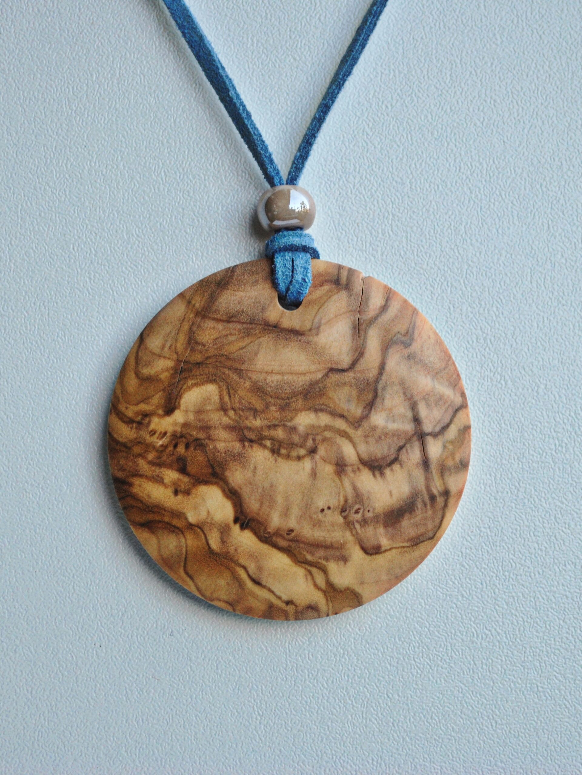 Κολιέ από ρίζα ελιάς διάμετρος 55χιλ ίδια όψει μπροστά και πίσω με σουετ κορδόνι