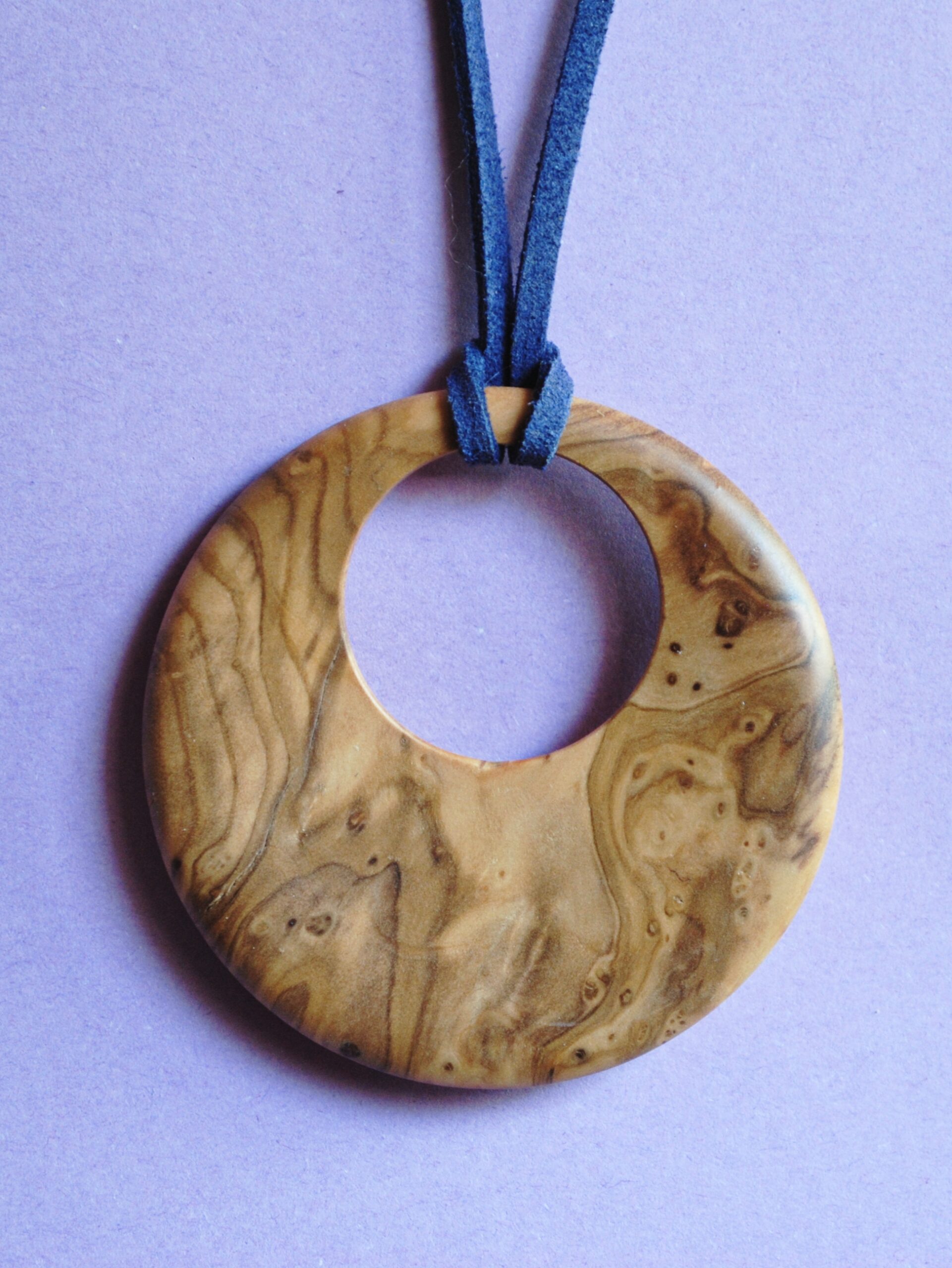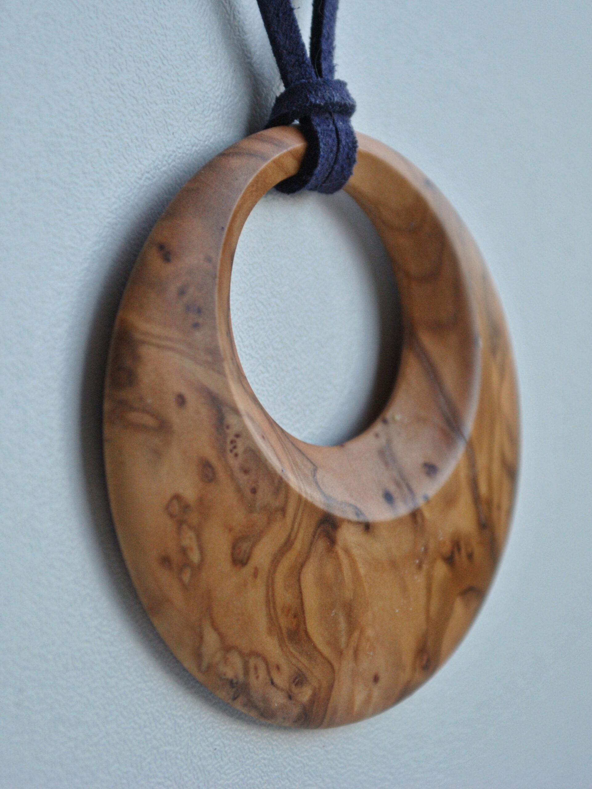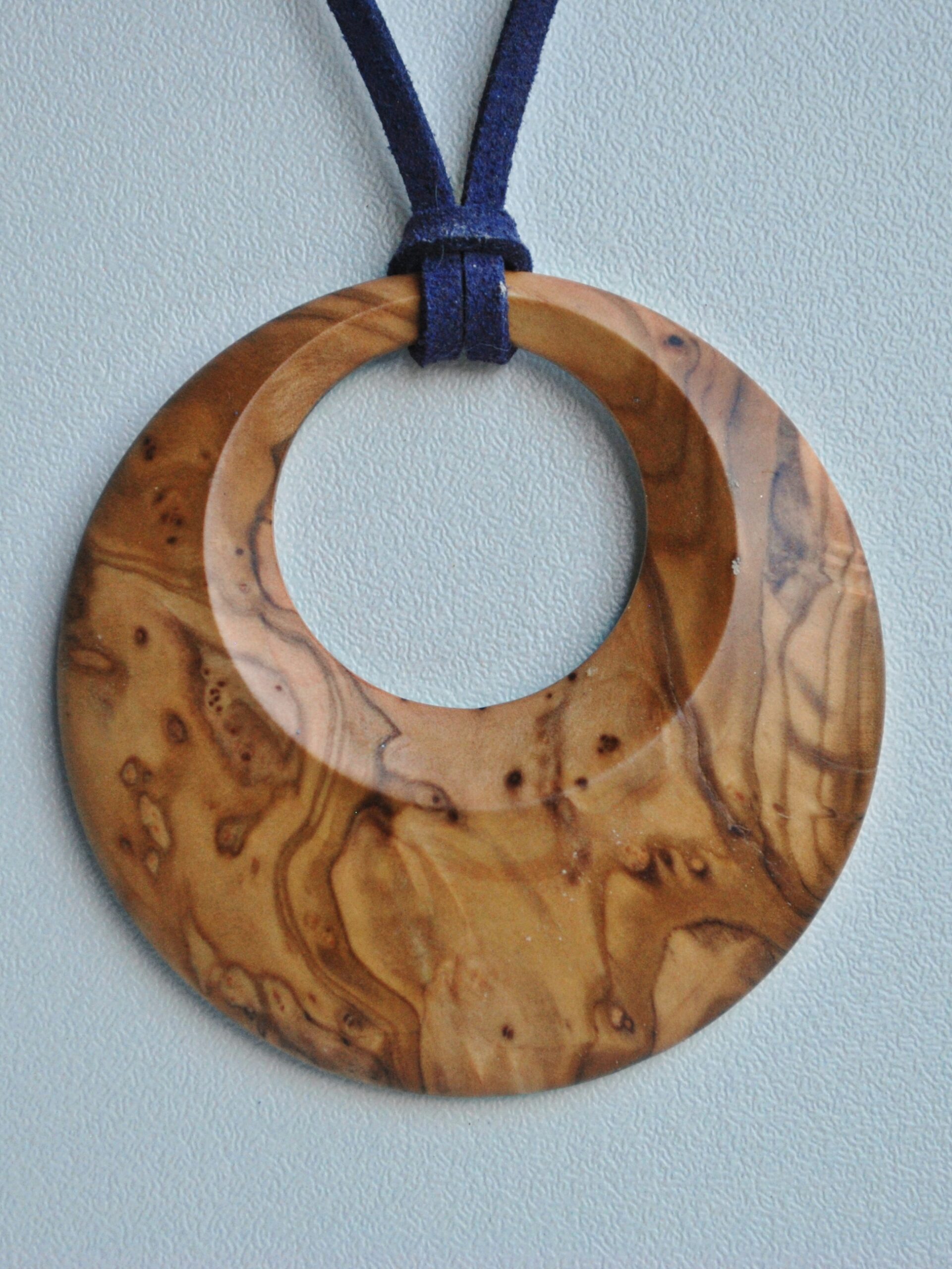 Κολιέ από ρίζα ελιάς διάμετρος 55χιλ με κορδόνι suede