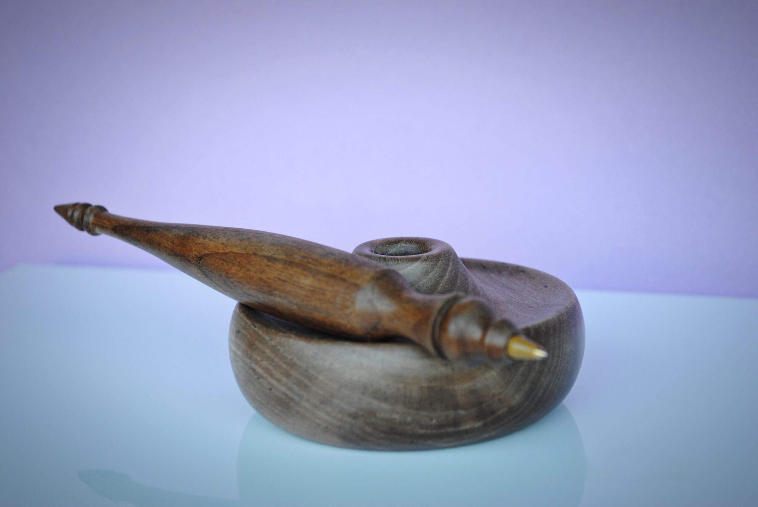 Στυλό με βάση στήριξης από ξύλο καρυδιάς σε μορφή πένας με ανταλλακτικό απλού big για εύκολη αλλαγή